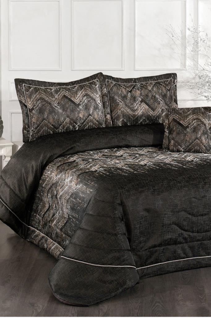 İnferno Elyaf Dolgulu Çift Kişilik 250x255 Cm Yatak Örtüsü Siyah