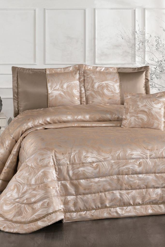 İrida Elyaf Dolgulu Çift Kişilik 250x255 Cm Yatak Örtüsü Bej