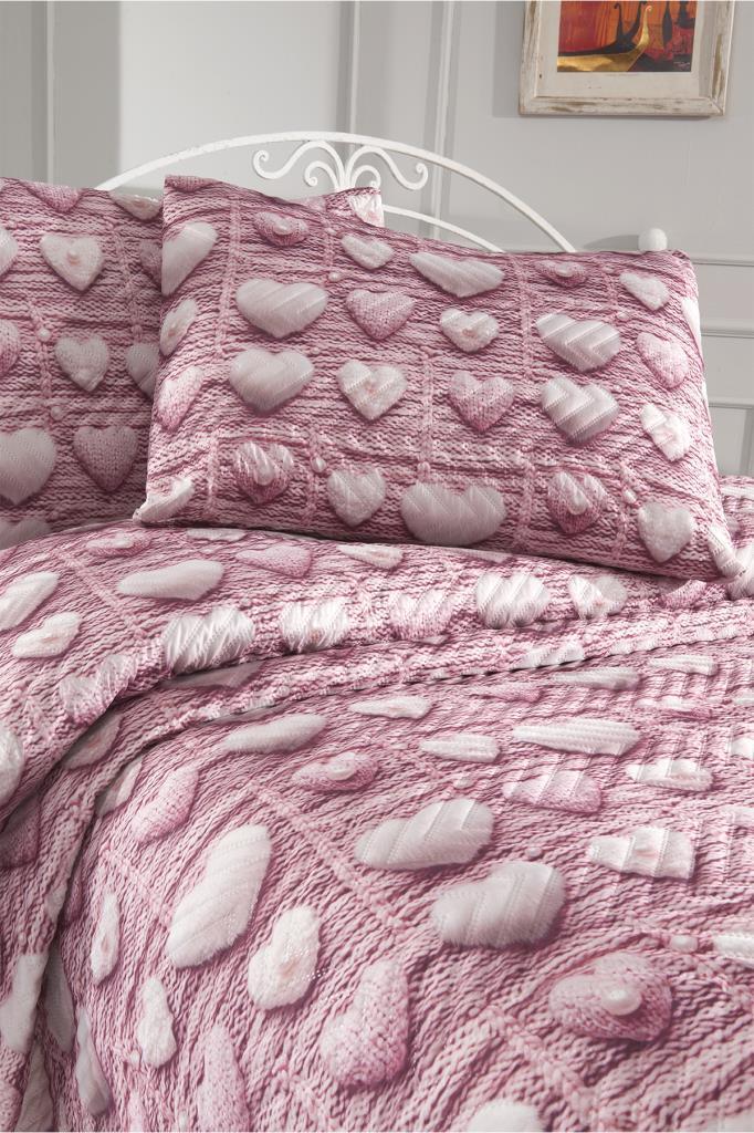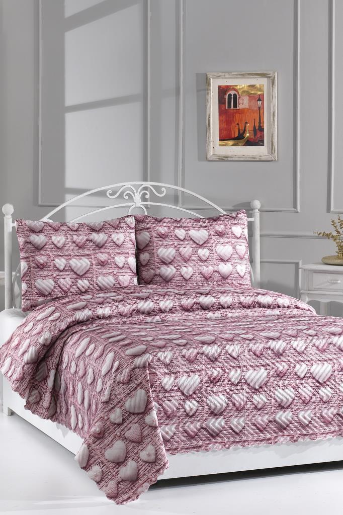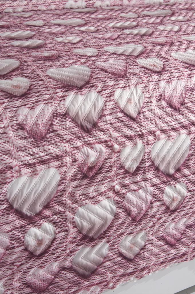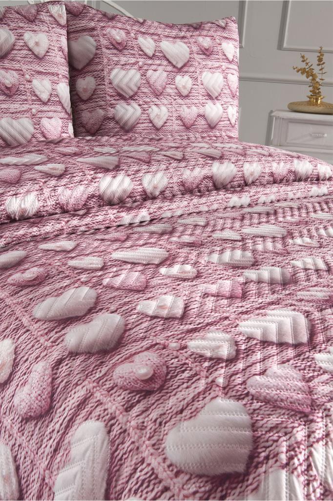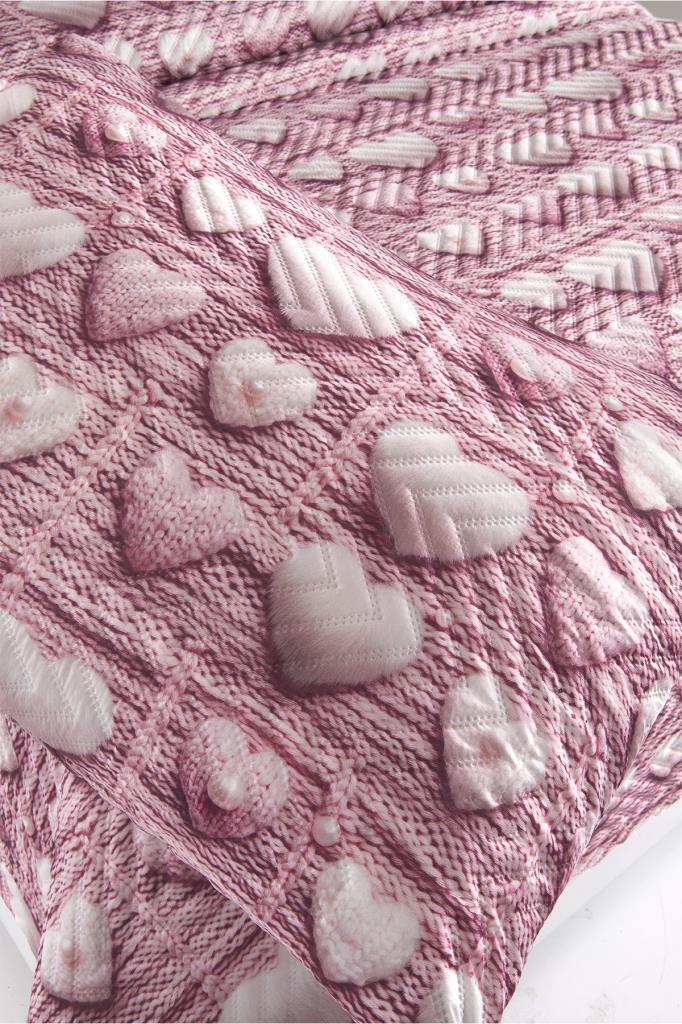 Kalpten Ultrasonik Kapitoneli 5D Baskılı Çift Kişilik Pike Takımı Pembe