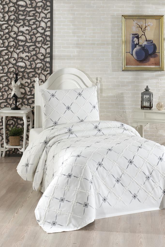 Kanola Nakışlı Şönil 2 Parça Tek Kişilik Yatak Örtüsü