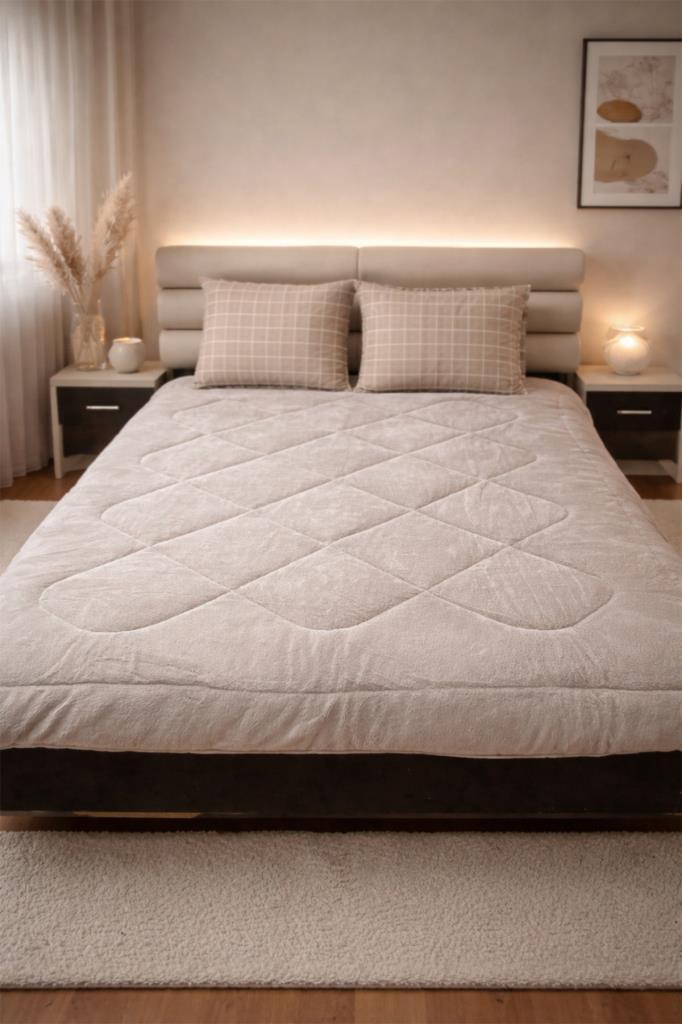 Kare Wellsoft 195x215 Cm Çift Kişilik Yorgan Takımı Bej