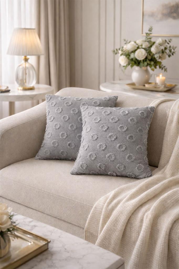 Konik Pamuklu 2'li Kırlent Kılıfı Gri