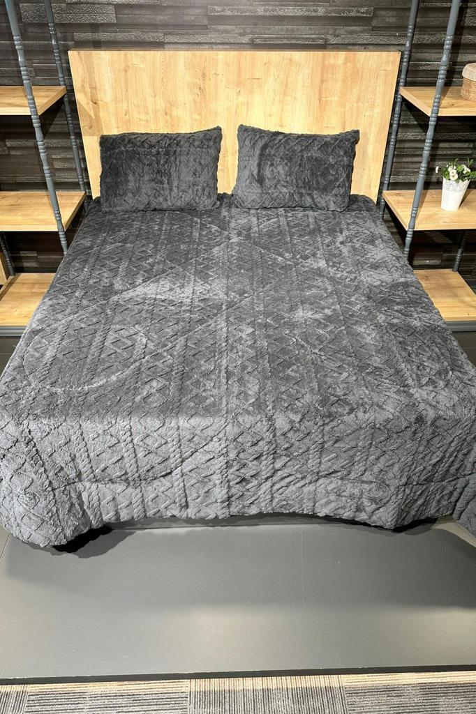 Leila Çift Kişilik Pelüş Yatak Örtüsü 220x240 cm Antrasit