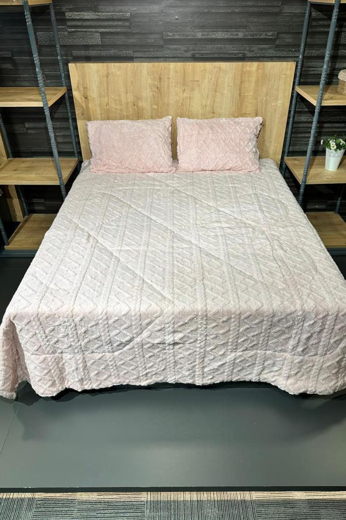 Leila Çift Kişilik Pelüş Yatak Örtüsü 220x240 cm Pudra