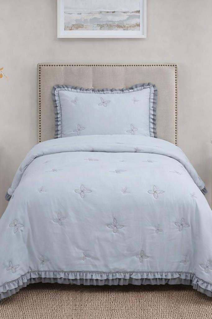 Likya Elyaf Dolgulu Tek Kişilik 180x240 Cm Yatak Örtüsü Gri