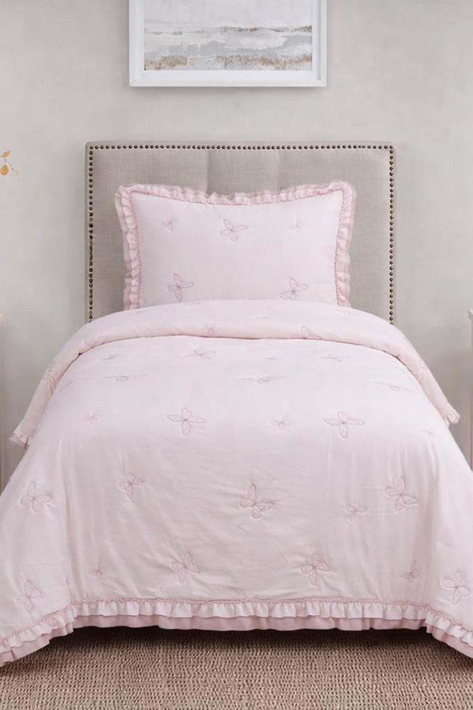 Likya Elyaf Dolgulu Tek Kişilik 180x240 Cm Yatak Örtüsü Pudra