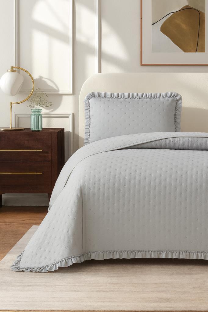 Lisbon Elyaf Dolgulu Tek Kişilik 180x240 Cm Yatak Örtüsü Gri