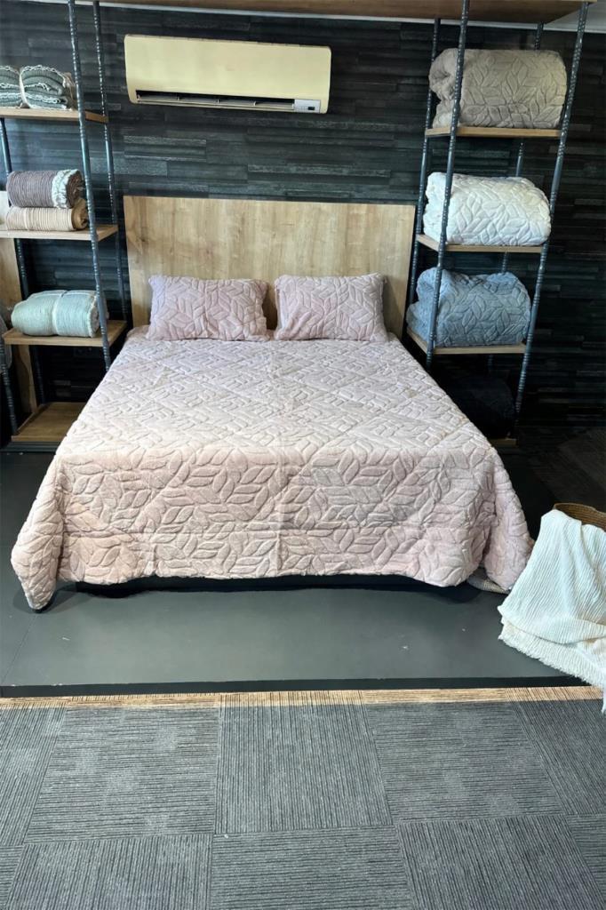 Pelüş kumaştan üretilmiş bu çift kişilik yatak örtüsü, hem konforu hem de estetiği bir arada sunar.