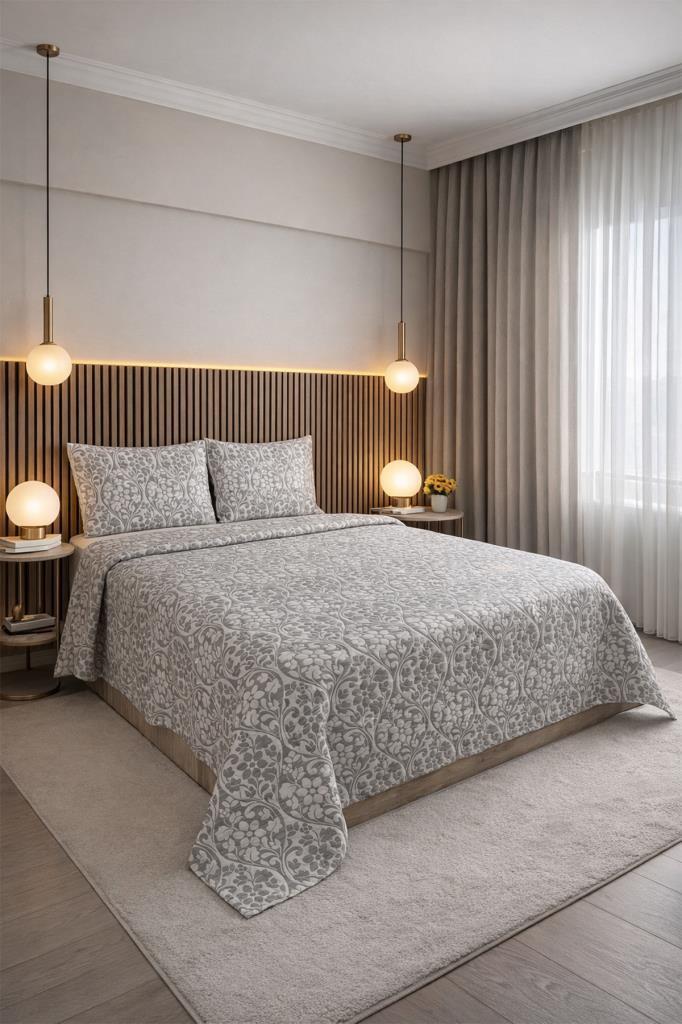 Günlük kullanımın yanı sıra çeyizlik olarak da tercih edilebilecek bu yatak örtüsü, sade ve şık tasarımıyla farklı yatak odası dekorasyonlarına kolayca uyum sağlar.