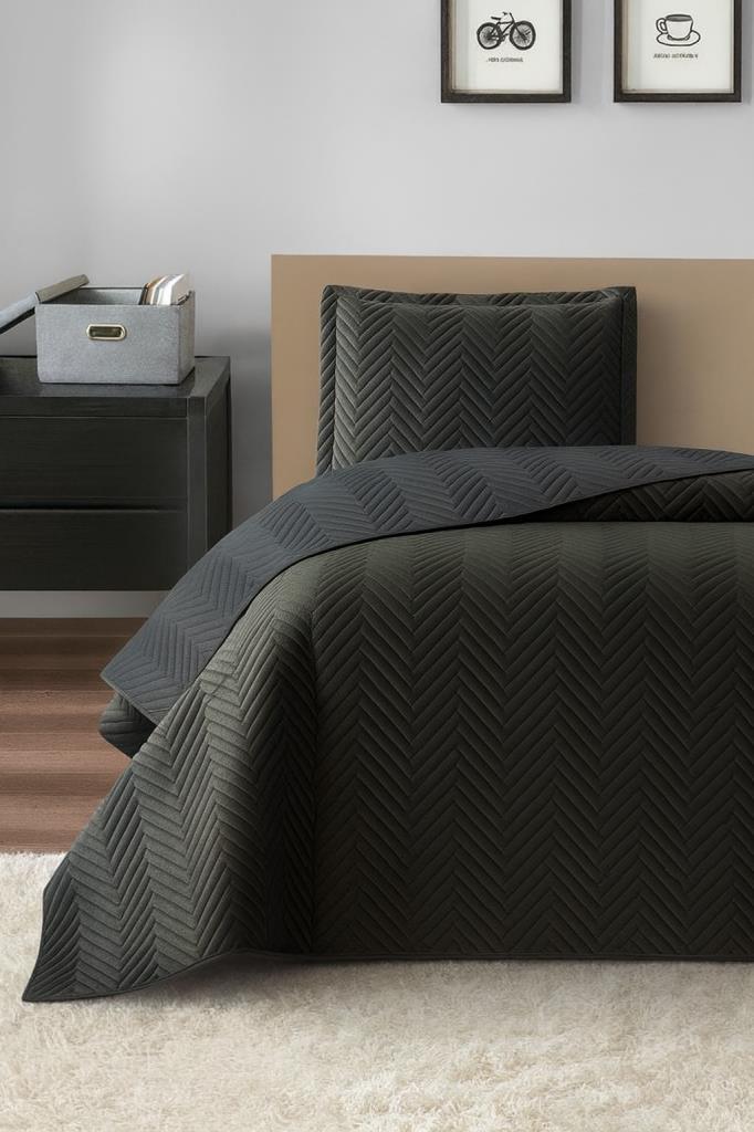 Malta Tek Kişilik Lüks Kadife 180x240 cm Yatak Örtüsü Antrasit