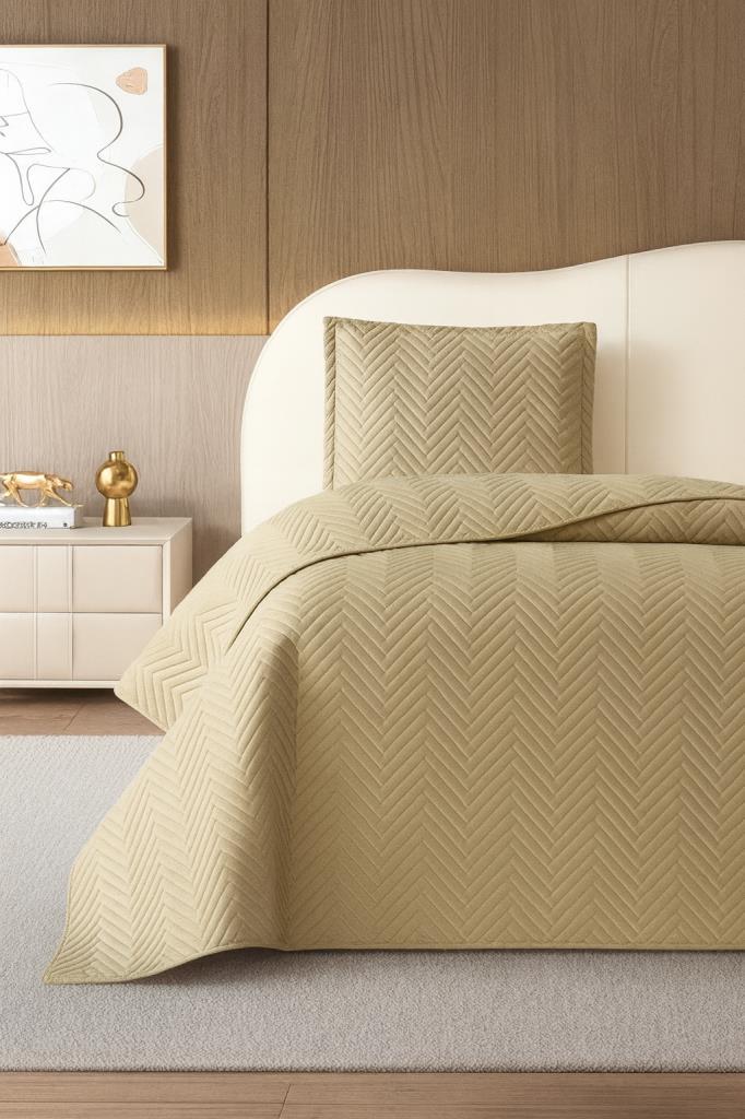 Malta Tek Kişilik Lüks Kadife 180x240 cm Yatak Örtüsü Bej
