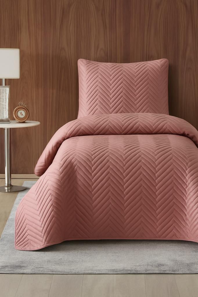 Malta Tek Kişilik Lüks Kadife 180x240 cm Yatak Örtüsü Gül Kurusu