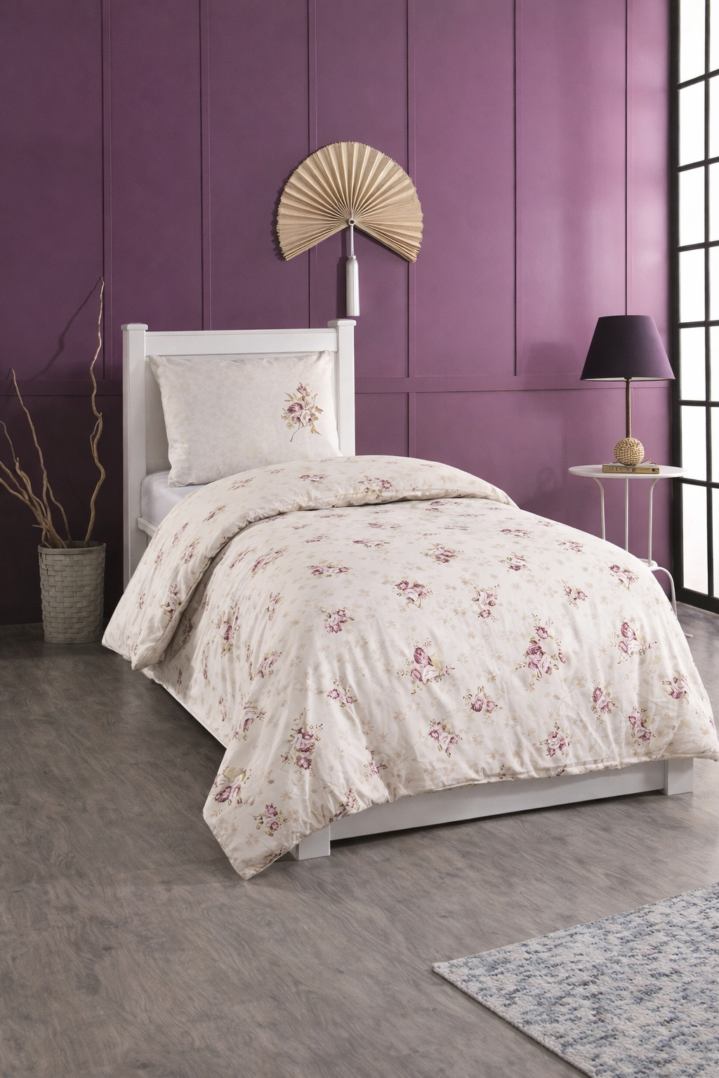 Yatak odanıza renk katacak desen ve renkleri ile hazırlanan bu ürünümüz %100 pamuk kumaştan imal edilmiştir.