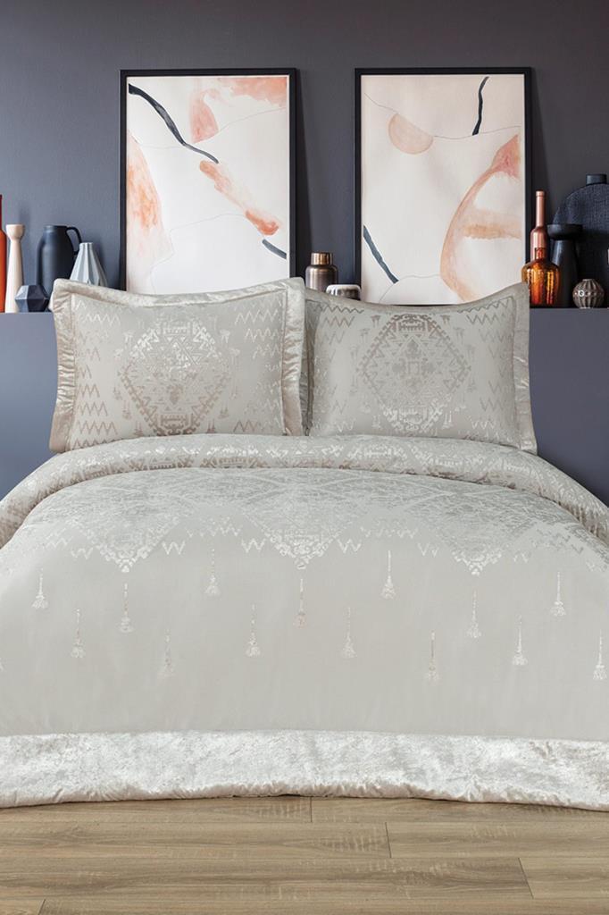 Mercan Elyaf Dolgulu Çift Kişilik 250x255 Cm Yatak Örtüsü Krem