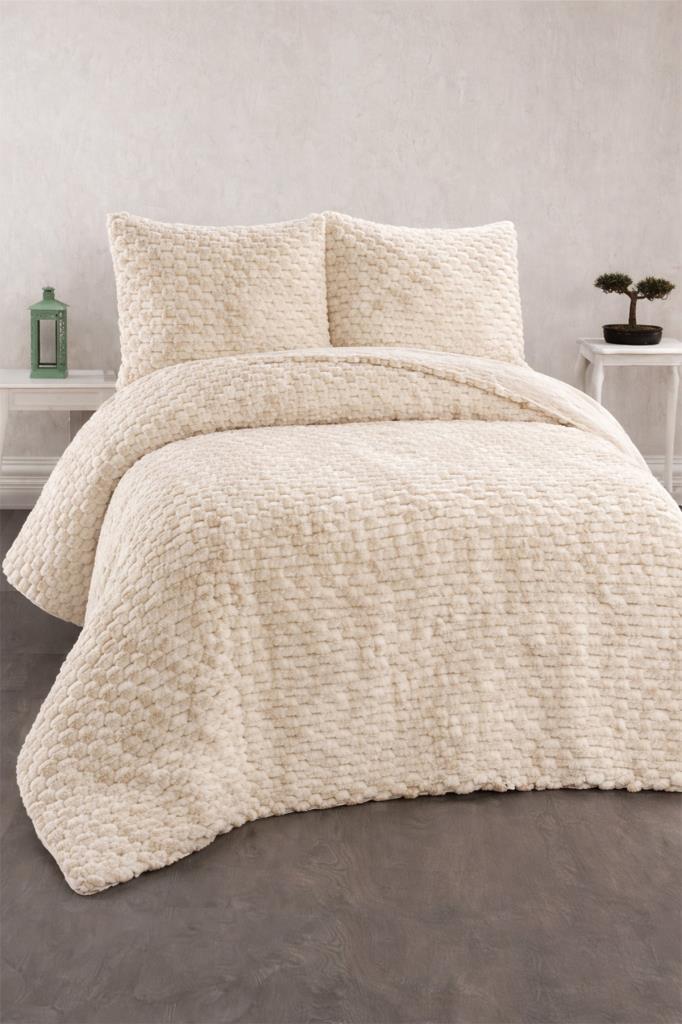Milano Tavşan Tüyü Çift Kişilik Yatak Örtüsü 220x240 Krem