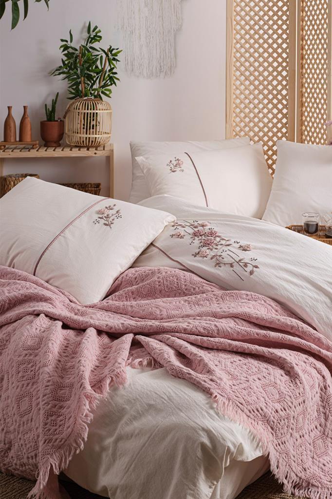 Mira 6 Parça %100 Pamuk Çift Kişilik Nevresim Takımı Pudra