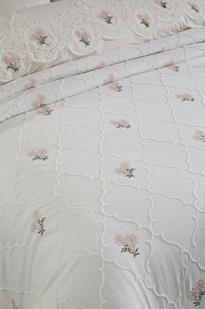 Yatak Örtüsü Şönil Kumaştan üretilmiştir. Nevresim takımı %100 Pamuk kumaştan üretilmiştir.