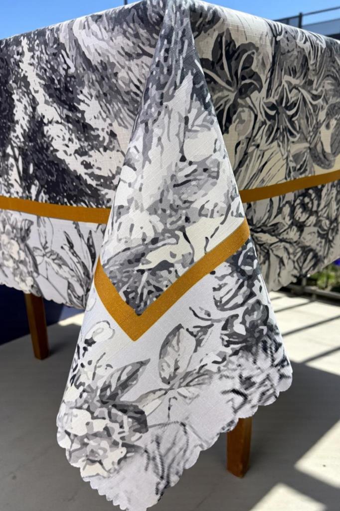 Doğadan ilham alan desenleri ve pratik kullanımıyla öne çıkan bu masa örtüsü,