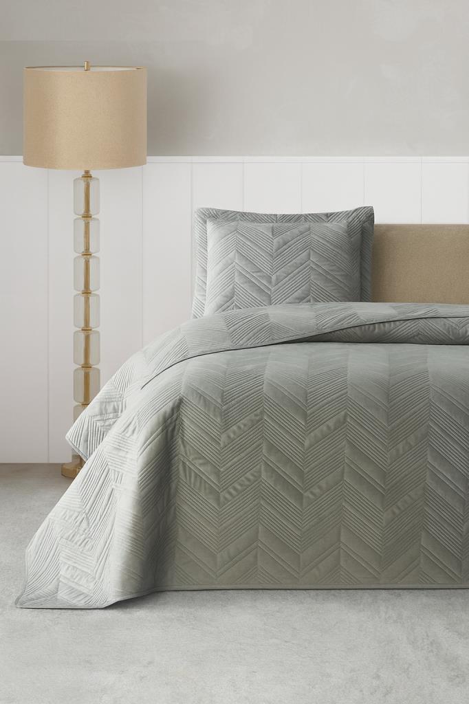 Paris Tek Kişilik Lüks Kadife 180x240 cm Yatak Örtüsü Gri