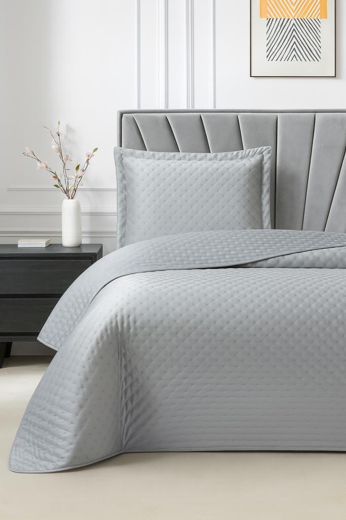Parma Tek Kişilik Lüks Kadife 180x240 cm Yatak Örtüsü Gri
