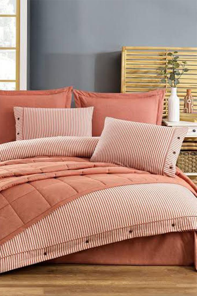 Pasioni 7 Parça %100 Pamuk Çift Kişilik Yatak Örtülü Nevresim Takımı Kiremit
