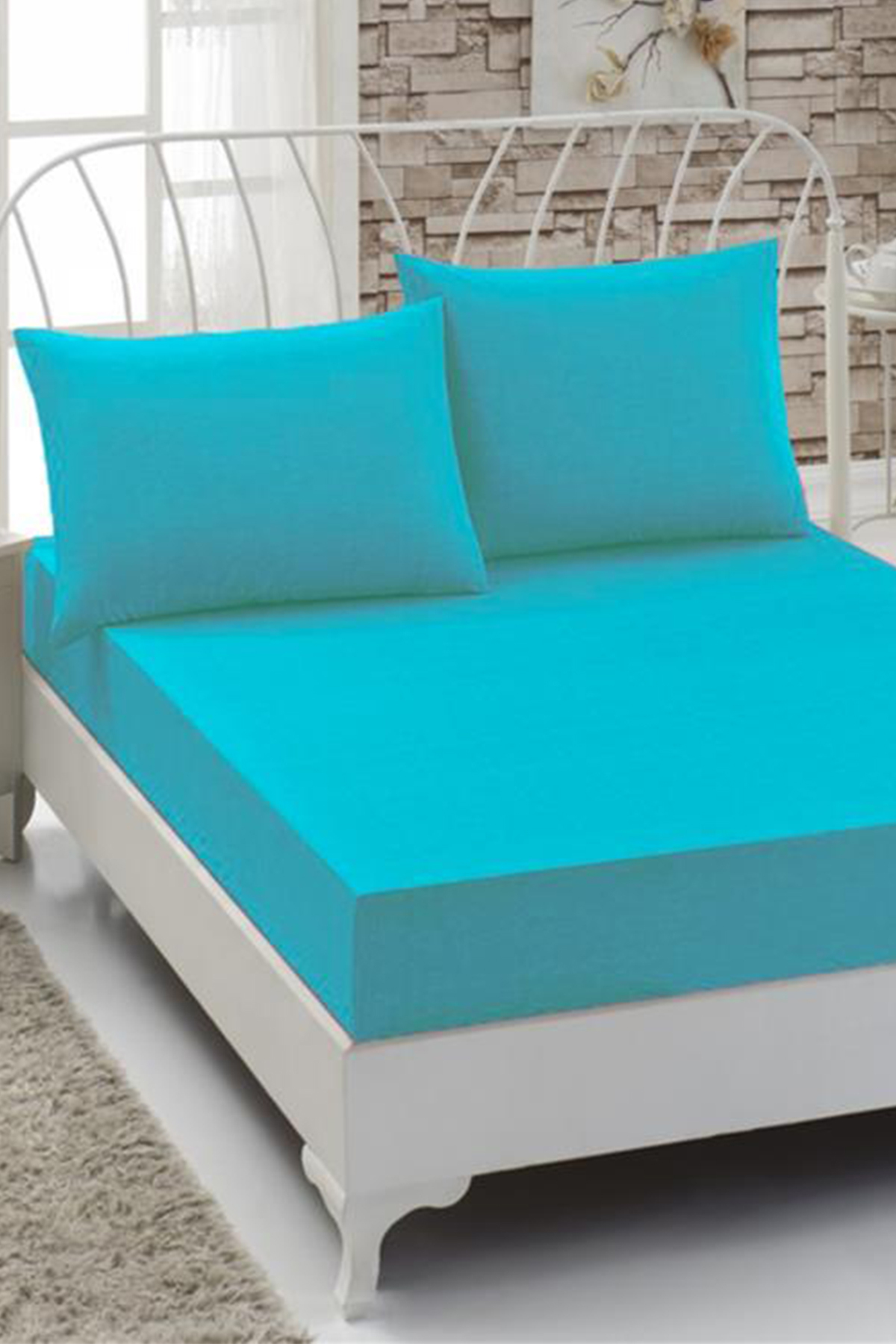 Penye Çift Kişilik Lastikli Çarşaf Turkuaz