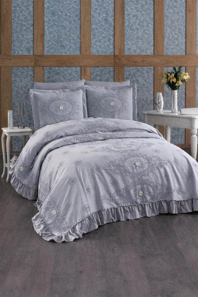 Perfact 3 Parça Çift Kişilik Pike Takımı Gri