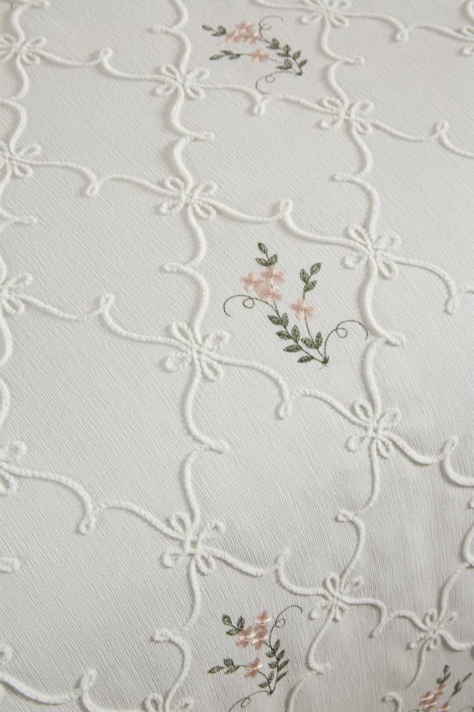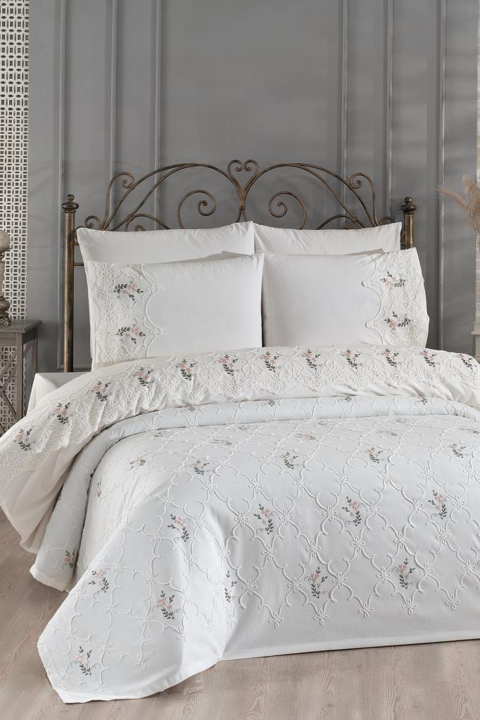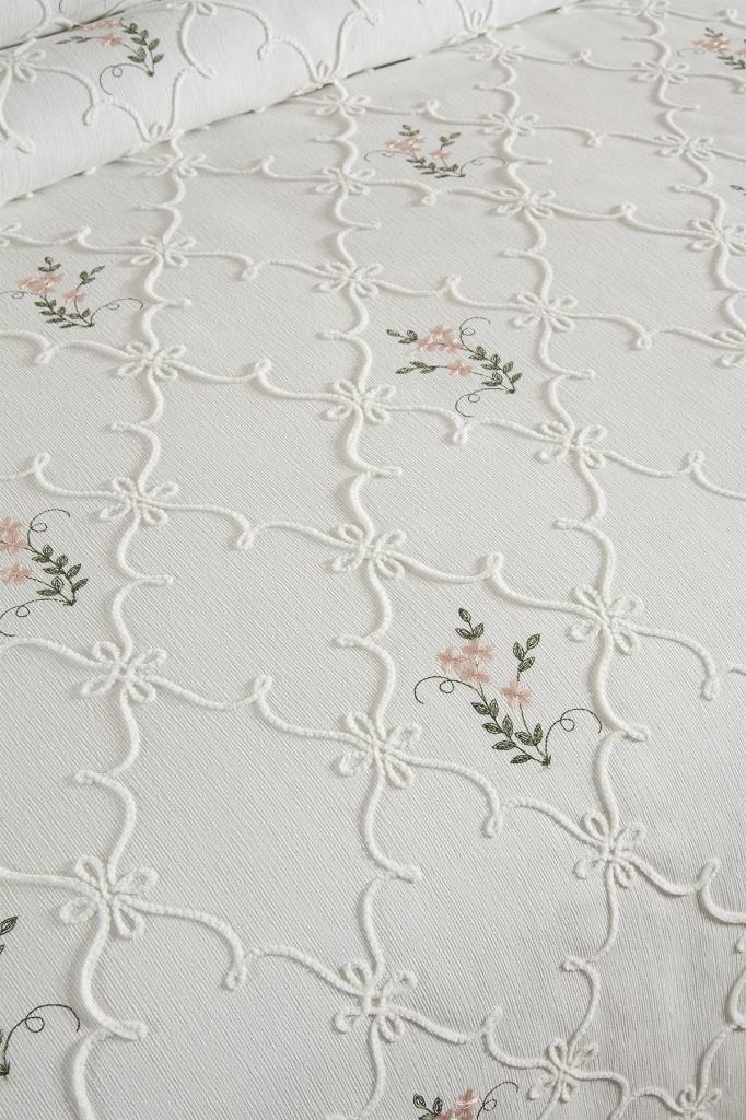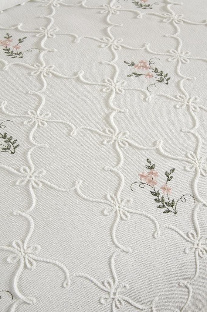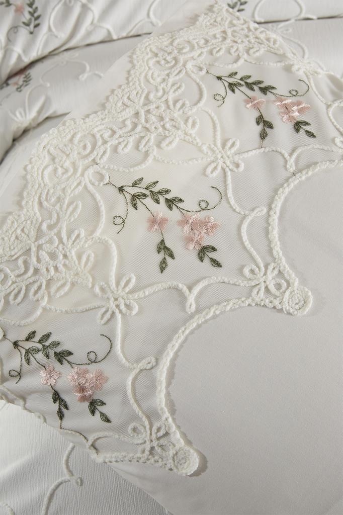 Pinkrose Nakışlı Şönil 7 Parça Gelin Seti Krem