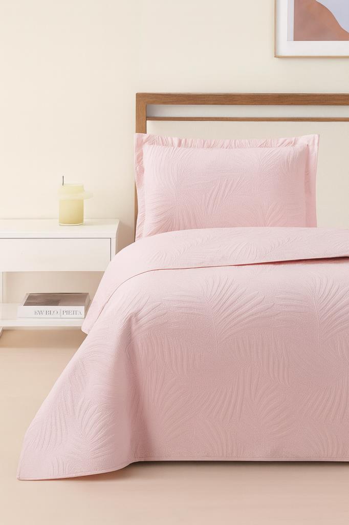 Prag Elyaf Dolgulu Tek Kişilik 180x240 Cm Yatak Örtüsü Pudra