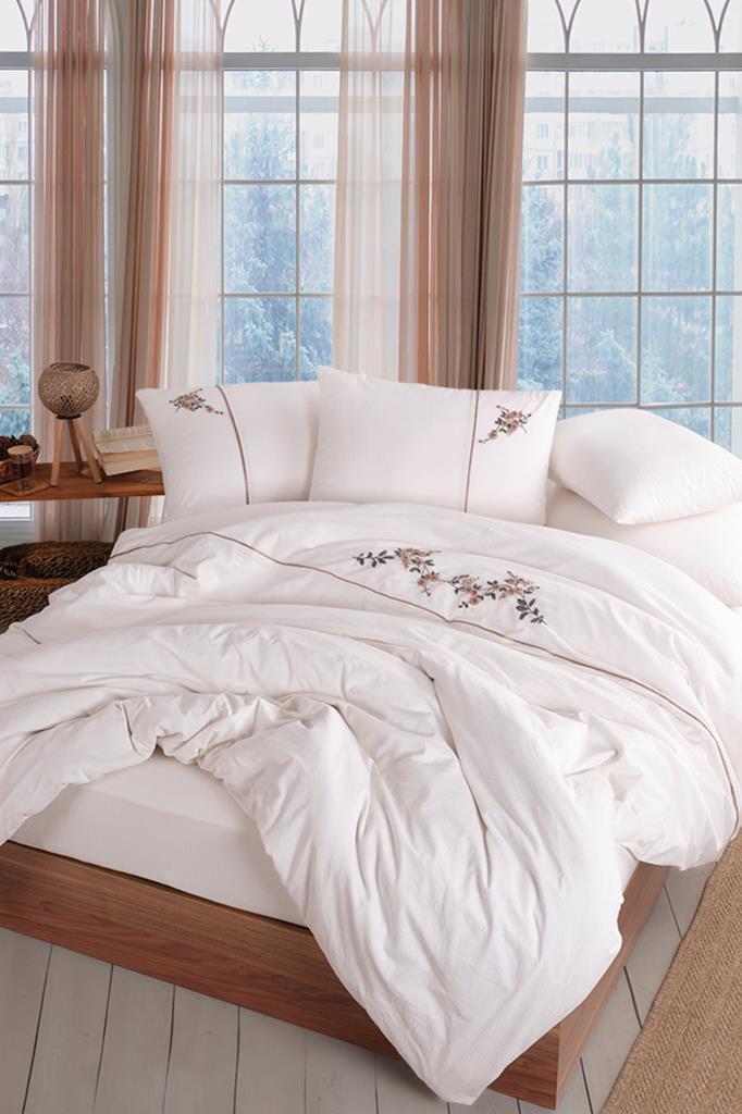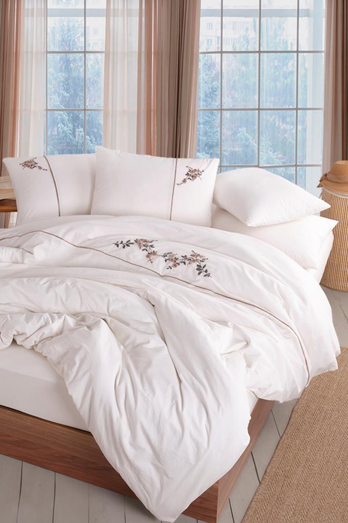 Roya 6 Parça %100 Pamuk Çift Kişilik Nevresim Takımı Bej