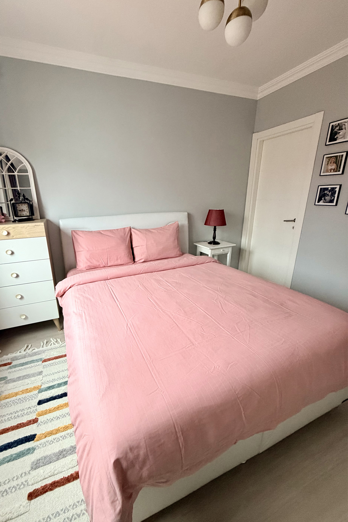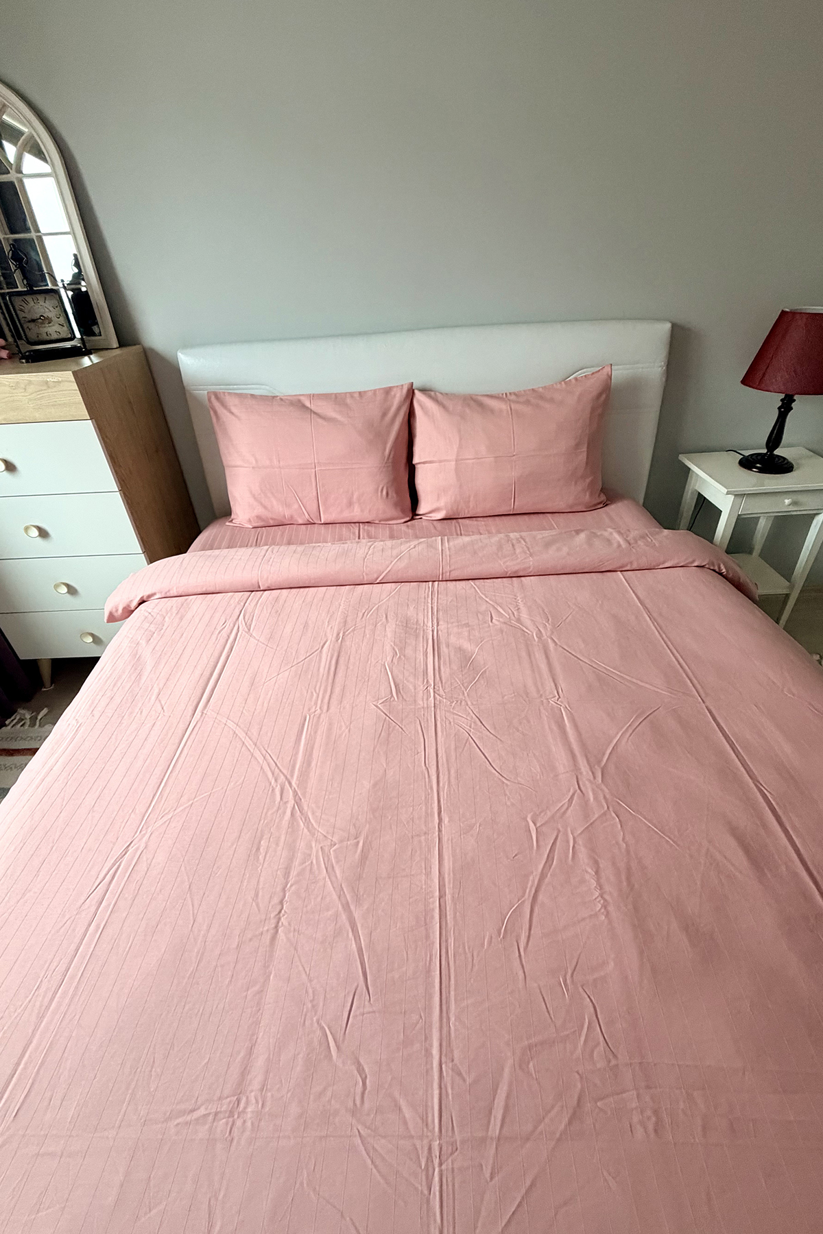Satin Zarif Armürlü Çift Kişilik Nevresim Takımı Pudra