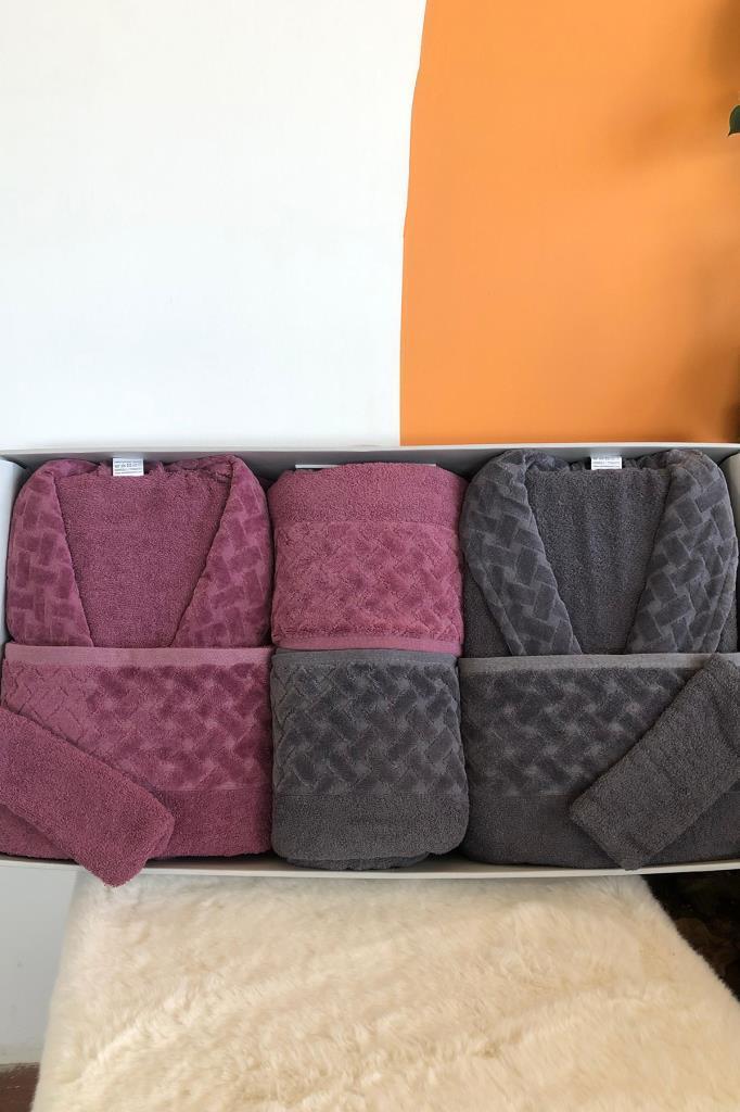 Şazeli 8 Parça Aile Bornoz Takımı Mürdüm Antrasit