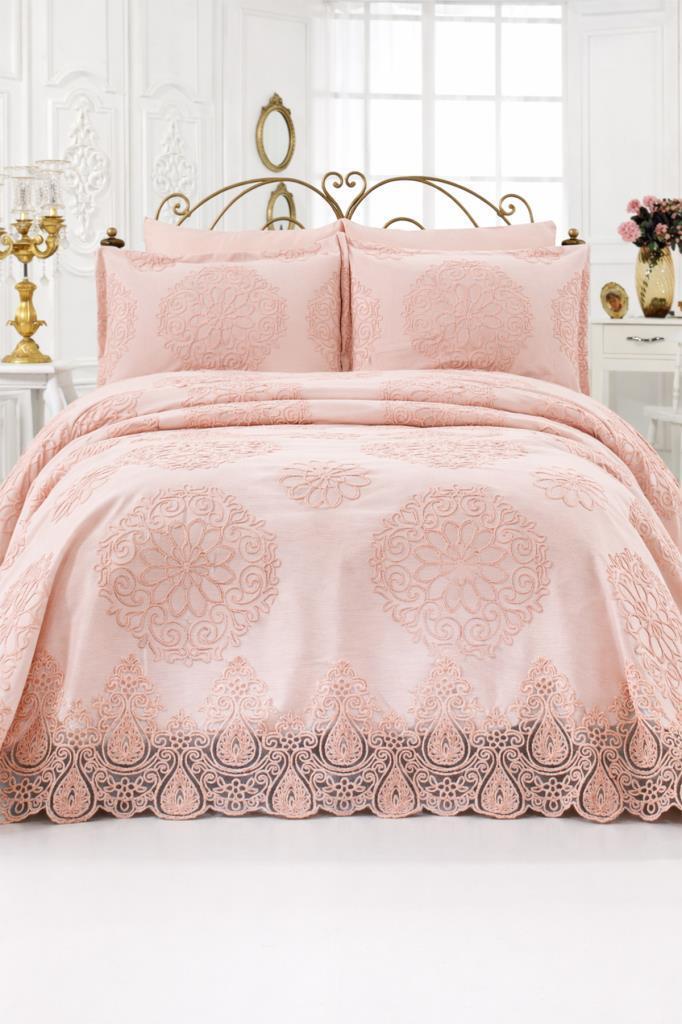 Sdney 3 Parça Çift Kişilik Pike Takımı Pudra