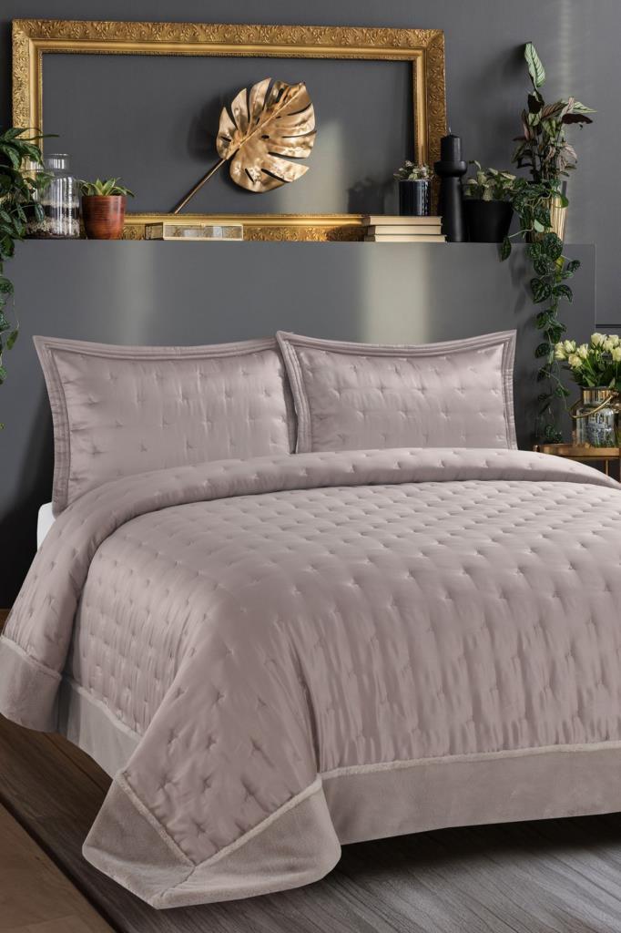 Sepora İpek Saten Çift Kişilik Yatak Örtüsü Bej