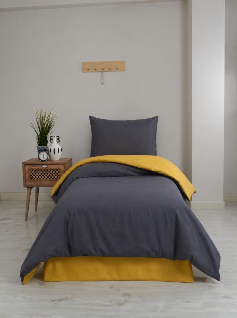 Silente Tek Kişilik Nevresim Takımı Antrasit - Sarı