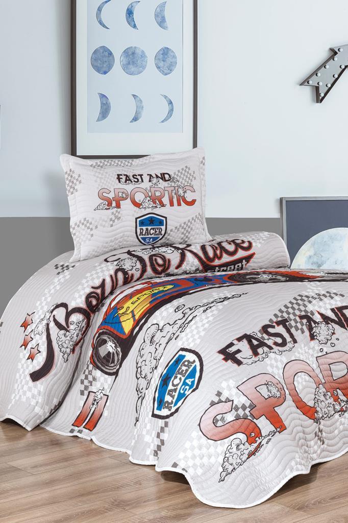 Sportic Car Baskılı Kapitoneli Tek Kişilik Yatak Örtüsü