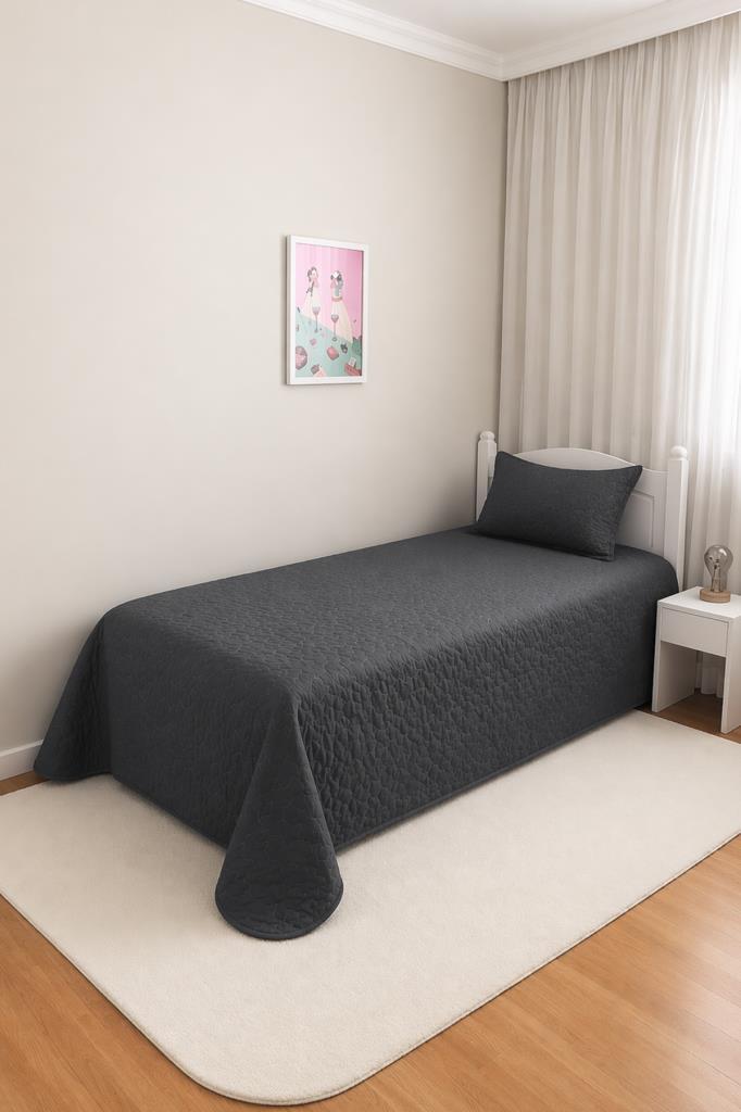 Star Tek Kişilik Kapitoneli Yatak Örtüsü Antrasit