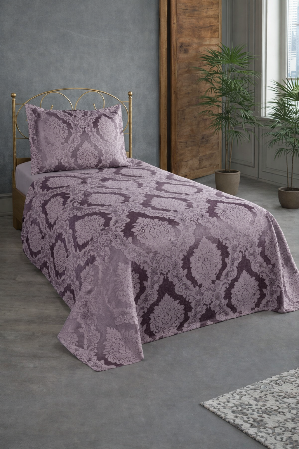Şulem Jakarlı Şönil Tek Kişilik 2 Parça Yatak Örtüsü Mürdüm