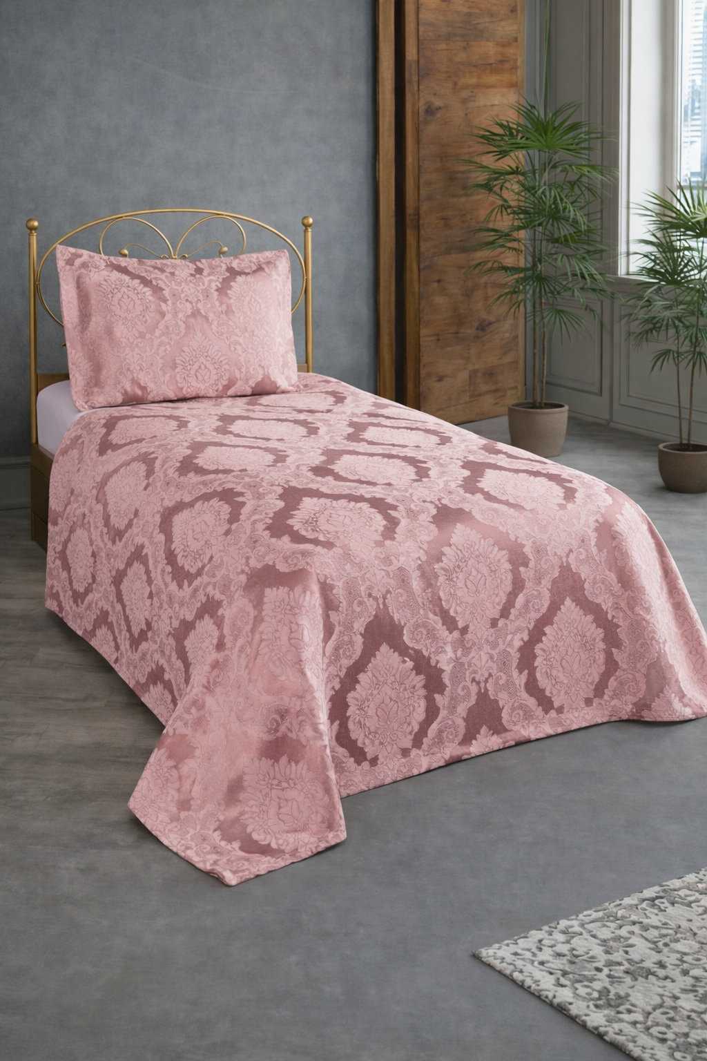 Şulem Jakarlı Şönil Tek Kişilik 2 Parça Yatak Örtüsü Pudra