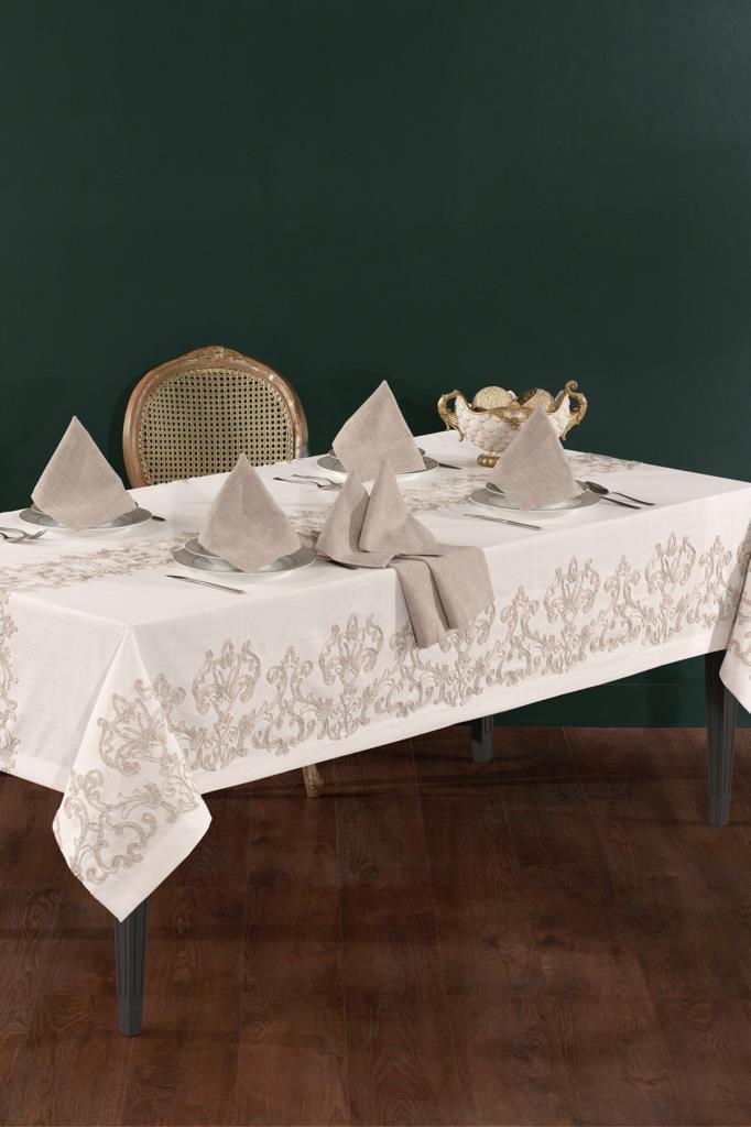Keten Nakışlı Amerikan Servisli Masa Örtüsü Takımı 13 Parça