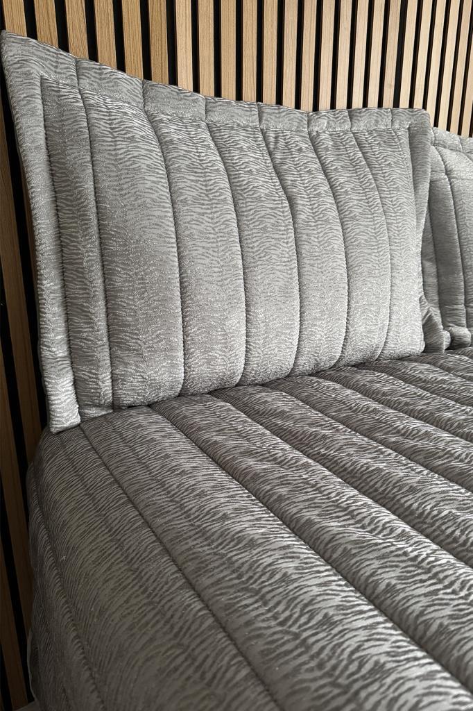 Velmira Jakarlı Kadife Elyaf Dolgulu Yatak Örtüsü 240x240 cm Gri