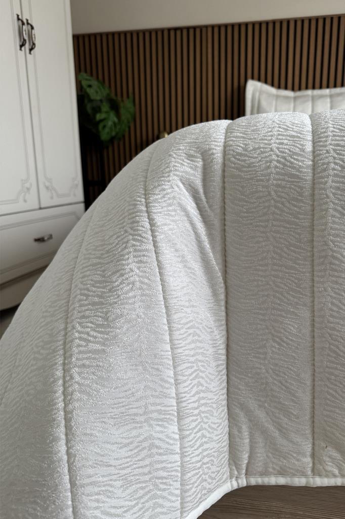 Velmira Jakarlı Kadife Elyaf Dolgulu Yatak Örtüsü 240x240 cm Krem