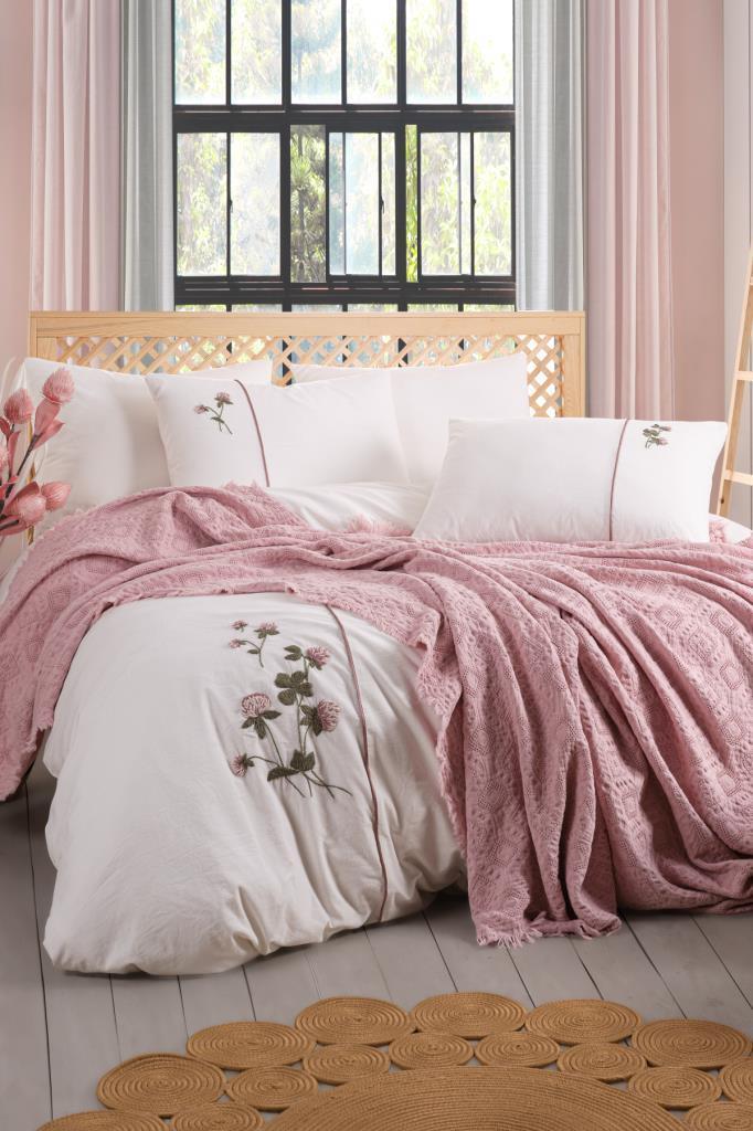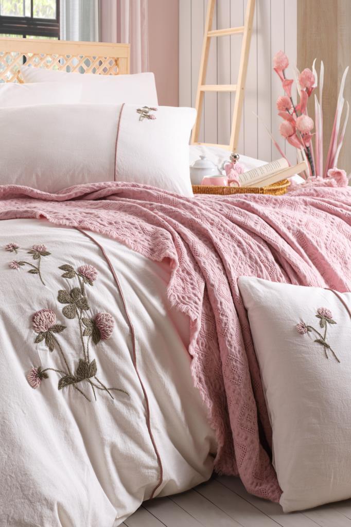 Vera 7 Parça %100 Pamuk Çift Kişilik Pikeli Nevresim Takımı Pudra