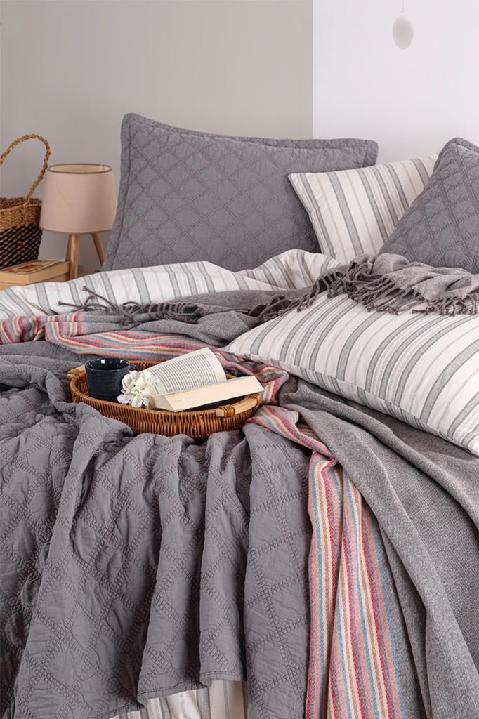 Nevresim takımı Akfil kumaştan üretilmiştir. Pike ve Pike kırlent kılıfları Şönil Kumaştan üretilmiştir.