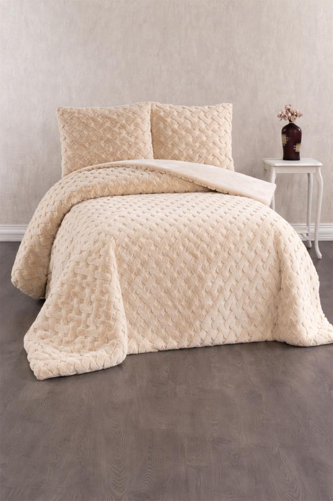 Viyana Tavşan Tüyü Çift Kişilik Yatak Örtüsü 220x240 Bej