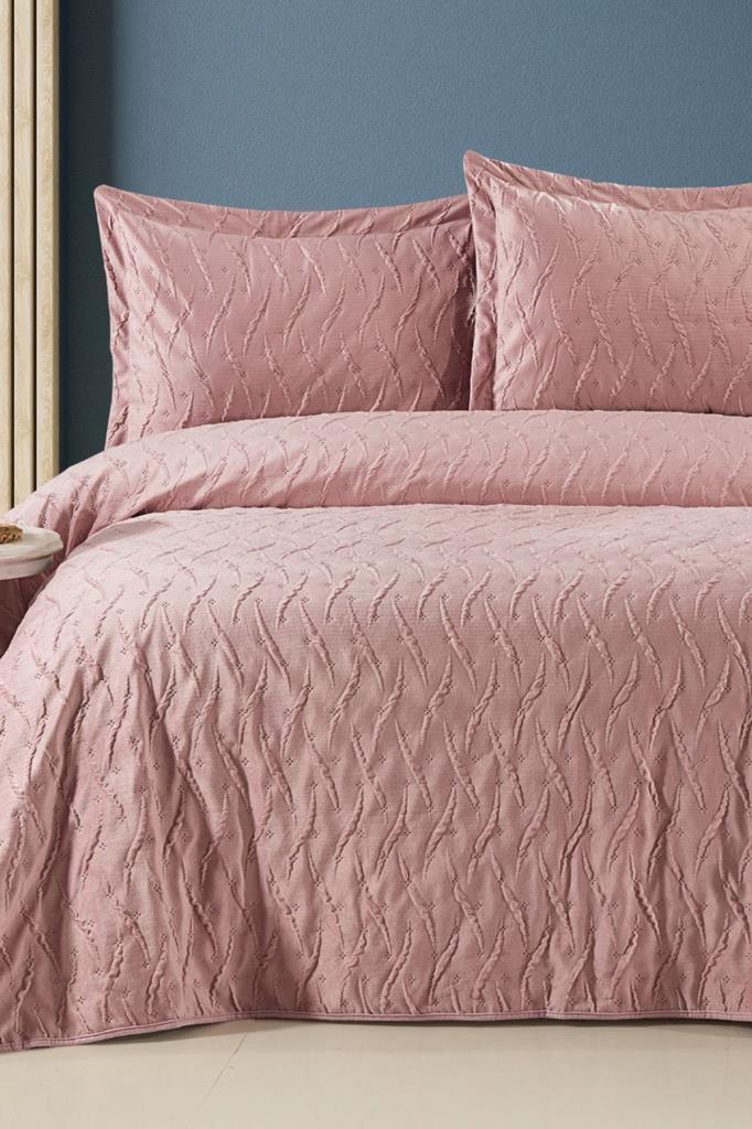 Zara Çift Kişilik Lüks Kadife Yatak Örtüsü Gül Kurusu
